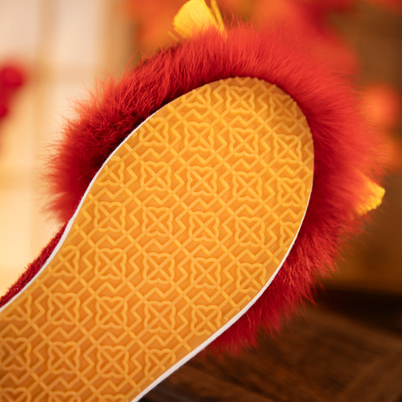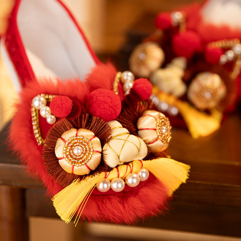Step into a world of cultural charm with our Brave Tiger handmade shoes, where luxurious red canvas meets exquisite artisan embroidery. This stunning pair features vibrant tiger heads with plush fuzzy eyes, elegant yellow tassels, luminous simulated pearls, and three festive red pom-poms at the forehead. Accented with rich brown lashes and crafted with traditional thousand-layer soles, these shoes blend symbolic storytelling with everyday elegance—perfect for the modern wearer who honors tradition with style. 🐯