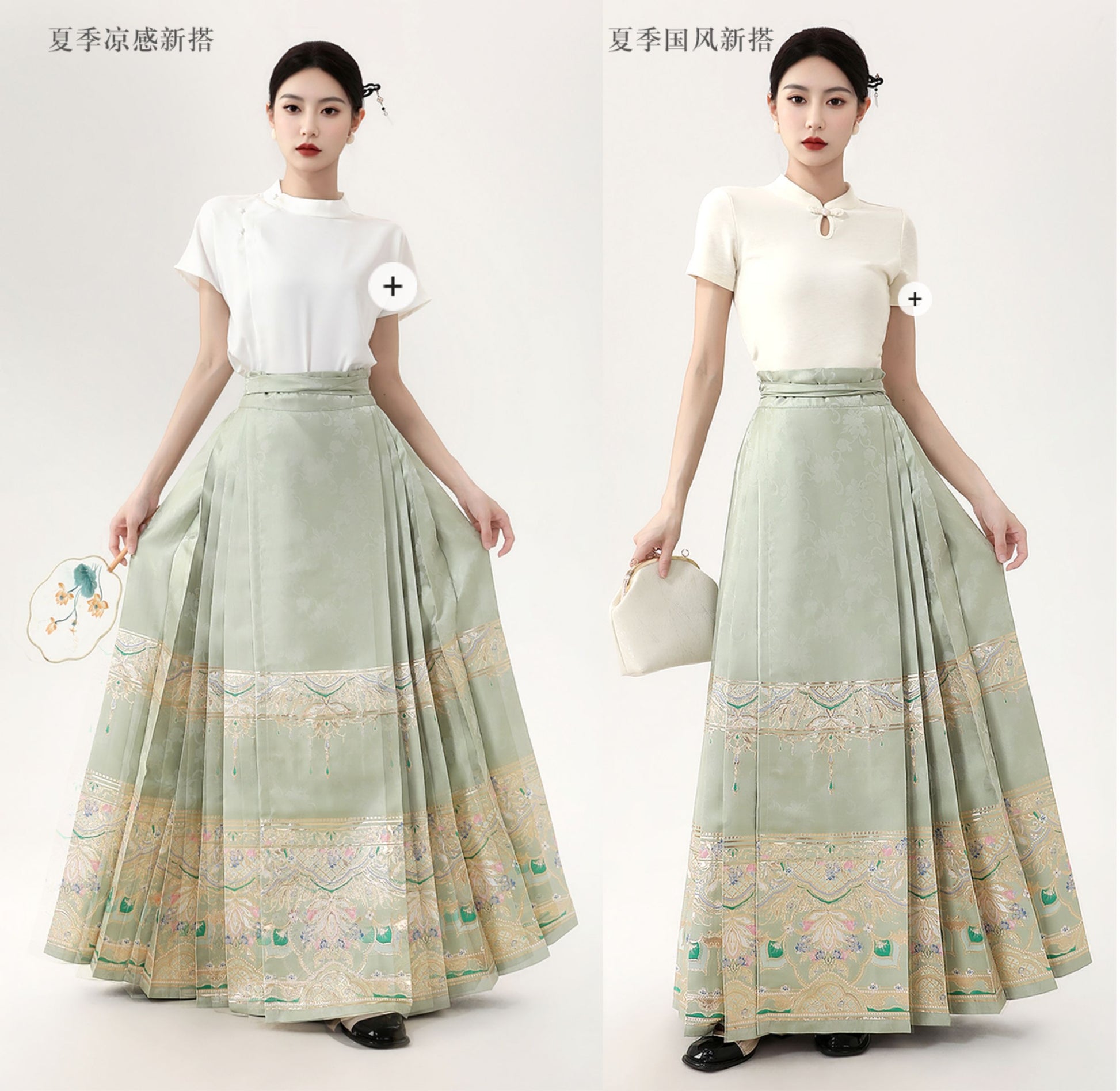 ✅ Pale green woven gold skirt — rare, elegant, and symbolically rich
