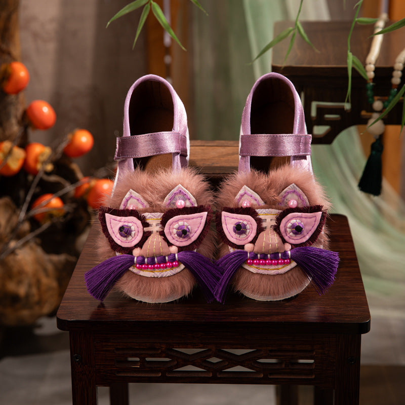 In Chinese tradition, the tiger guards and guides the young, symbolizing courage and blessing. The purple tassels evoke nobility and dreams, while the pearls add a touch of timeless grace. With every step, the lightweight sole and breathable lining ensure comfort, making these more than just shoes—they’re heirlooms of hope and cultural pride. 🌙